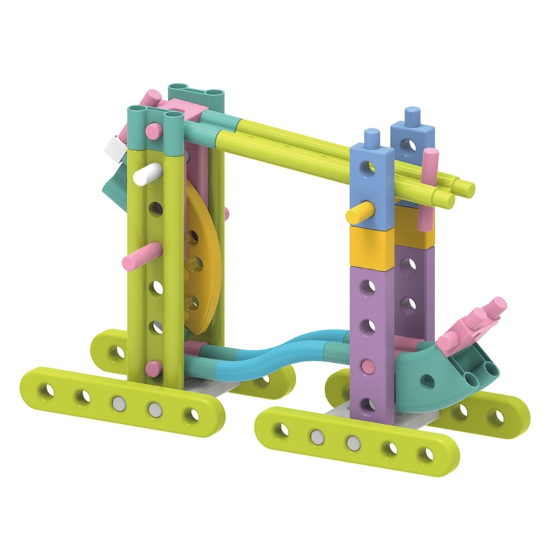 - Có thể thay đổi trọng lượng bằng cách thêm các vật khác vào trong quả bóng đi kèm. Bé sẽ được khám phá và thử nghiệm sự khác nhau về tốc độ và quỹ đạo khi trọng lượng của bóng lăn bị thay đổi.
