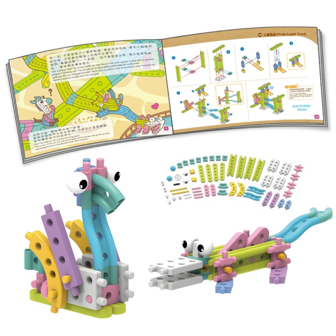 Đồ chơi STEM Sở Thú Vui Vẻ được thiết kế dành riêng cho các bé mầm non, bộ sản phẩm bao gồm hướng dẫn lắp ráp và truyện tranh in màu, giúp bé dễ dàng nhập vai vào cốt truyện, đồng thời bổ trợ cho việc giáo dục sớm bằng cách lồng ghép những khái niệm vật lý, cơ học, máy móc cơ bản.